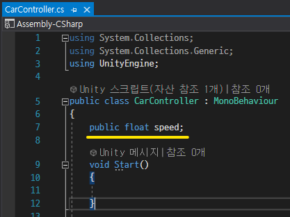 스크립트에서 public으로 선언된 필드, 맴버는 인스펙터 창에서 접근 수정이 가능하다.