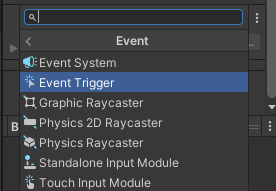 인스펙터 창에서 Add Component 클릭 -> Event -> Event Trigger