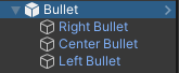 하이어라키 창의 Bullet오브젝트 프로젝트 창으로 드래그&드롭(프리팹화)