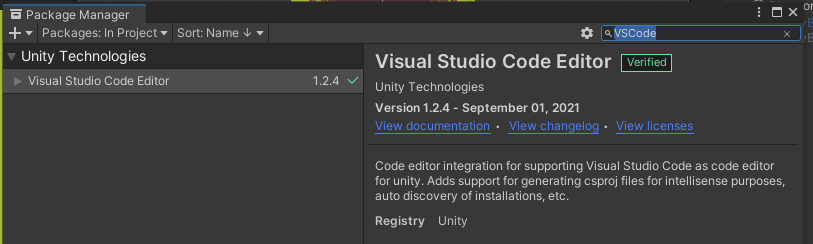 | 네임스페이스 이름도 제대로 지정했고 참조도 제대로 했고 컴파일도 제대로 되어 있고... 아무리 찾아봐도 코드에 문제가 없다면 유니티 자체에 문제가 있을 가능성이 있어요. 이 경우 해결 방법은 유니티의 패키지 매니저에서 VS Code 버전을 바꿔주는 것입니다. https://dev-nicitis.tistory.com/11 |
