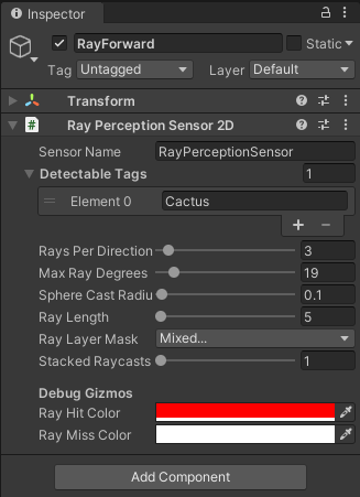 | if (collision.collider.CompareTag("Ground")) { this.score += 0.03f; this.AddReward(0.03f); } ------------------------------------------------ if (collision.collider.CompareTag("Cactus")) { Destroy(collision.gameObject); this.score = 0; this.AddReward(-this.score/2); this.EndEpisode(); } |